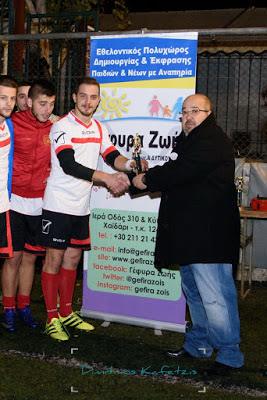 Φιλανθρωπικό τουρνουά ποδοσφαίρου παρακολούθησαν την Κυριακή 11 – 12 -16 πλήθος κόσμου μαζί με τον Δήμαρχο Χαϊδαρίου , κ. Μιχάλη Σελέκο , για την ενίσχυση της Γέφυρα Ζωής