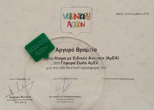 Μια σημαντική αναγνώριση ήρθε με την βράβευση με το άργυρο βραβείο, για τον Εθελοντικό Πολυχώρο Παιδιών & Νέων με Αναπηρία της Γέφυρας Ζωής Α.μεΑ, από το Skywalker.gr που διοργάνωσε για τέταρτη συνεχή χρονιά το Φεστιβάλ Εθελοντισμού Voluntary Action 2019.
